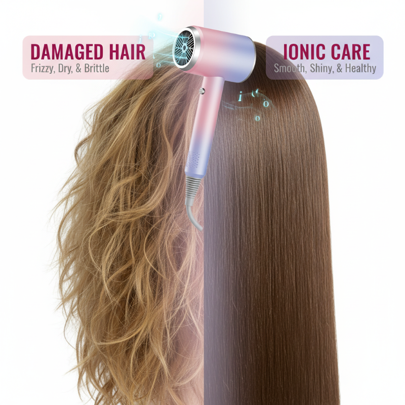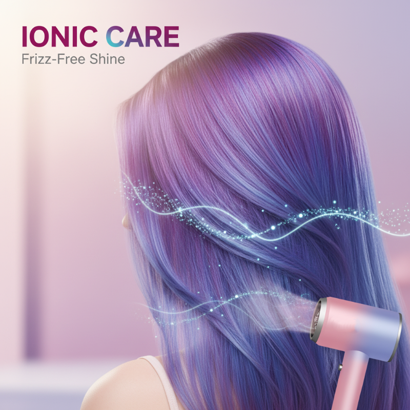 NEGATIVE IONENPFLEGE- Versorgen Sie Ihr Haar während des Trocknens mit Millionen negativer Ionen, die dazu beitragen, die Schuppenschicht zu versiegeln, Kräuselungen zu reduzieren, den Glanz zu verbessern und Ihr Haar glatter und gesünder aussehen zu lassen.