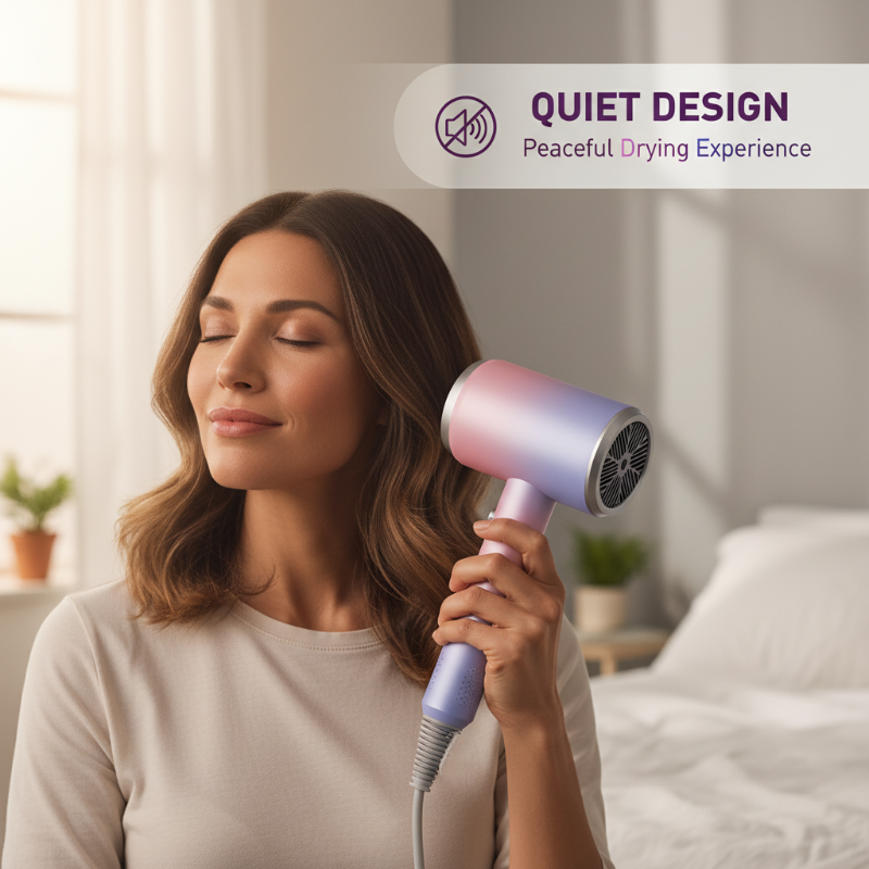 ULTRALEISER BETRIEB - Genießen Sie dank der fortschrittlichen Geräuschreduzierungstechnologie ein ruhiges Haartrocknungserlebnis, sodass Sie es jederzeit verwenden können, ohne andere zu stören.
