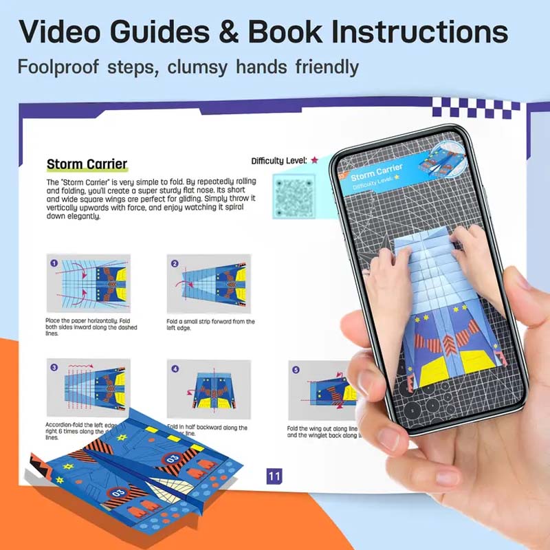 EINFACHES FALTEN FÜR JEDEN – Keine Erfahrung mit Origami? Kein Problem! Unsere vorgefertigten Faltlinien fungieren wie Stützräder für Papierflieger und führen kleine Hände jedes Mal zu perfekten Falten. Jeder kann mitmachen, vom Anfänger bis zum Profi, und mit jedem Falten mehr Selbstvertrauen gewinnen.