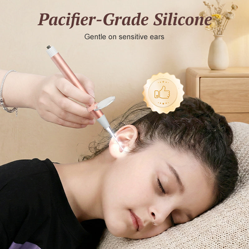 Schnuller-geeignete Silikonspitzen – Hergestellt aus ultraweichem, babysicherem Silikon für ein sanftes Gefühl. Dies garantiert ein angenehmes, reizfreies Erlebnis und macht die Ohrreinigung für Kinder und Erwachsene gleichermaßen zu einem ruhigen und angstfreien Vorgang.